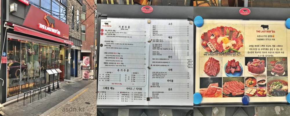 인생은 고기소 고기다라는 간판의 글자와 함께 지나가는 사람들의 입맛을 다시게끔하는 가게랍니다.