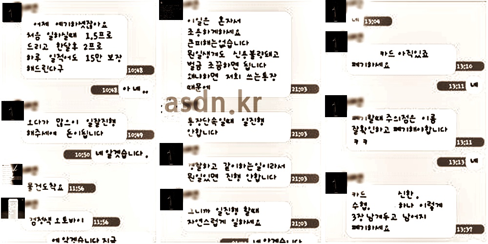 알고보니 이들의 주된 업무는 신용카드 배달이며 하루에 10건정도의 물건을 옮기면 매일 30만원에서 50만원씩 통장에 돈이 들어왔다고 합니다.