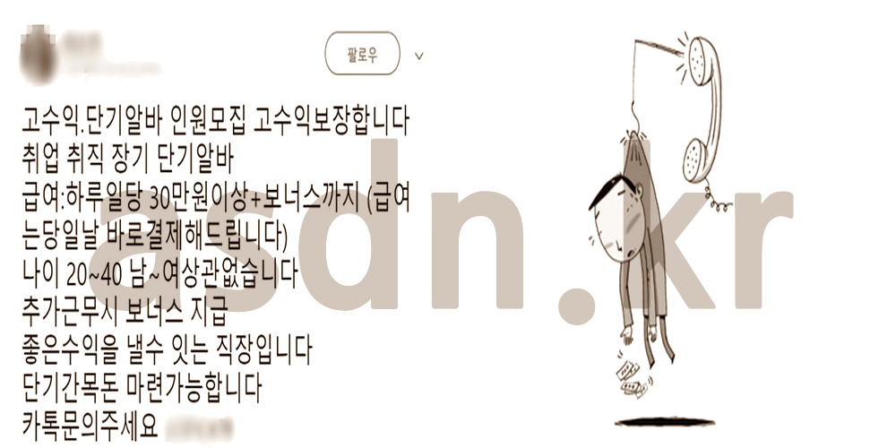 요즘 들어서 새로운 신종사기인 '고수익알바'라는 단어가 등장을 했습니다.