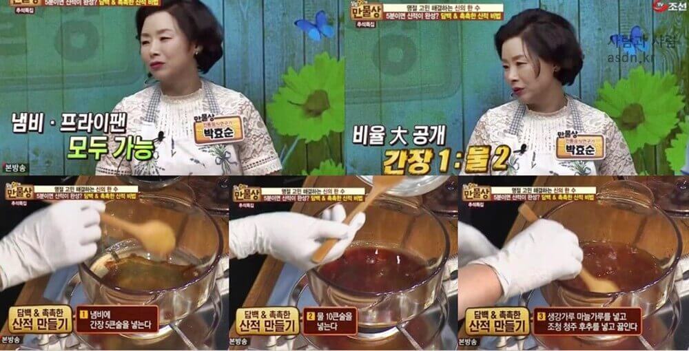 안녕하세요:) 사람과 사람 블로그입니다.이번 포스팅에서는 TV조선 만물상에서 방송한적이 있는 전통 음식 연구가 박효순 요리레시피에 대해서 알려 드리고자 합니다.