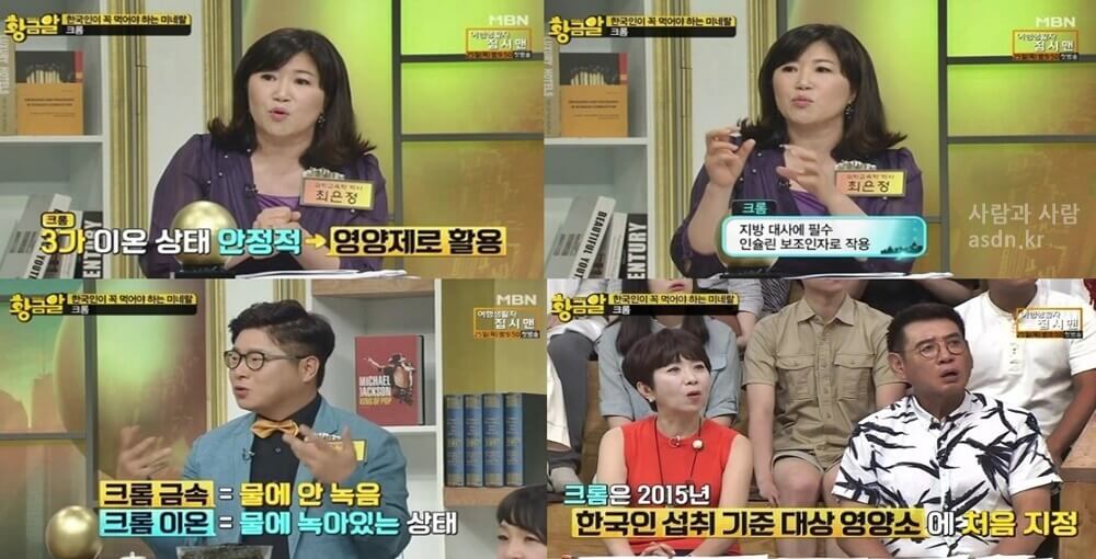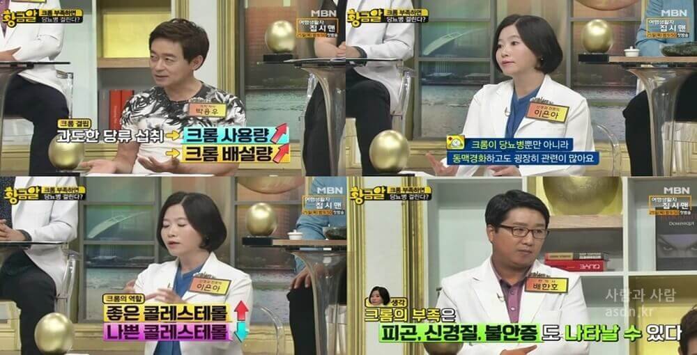 이번 포스팅에서는 MBN 황금알에서 소개한 바가 있는 미네랄 크롬 부족현상,미네랄 크롬 많은 음식,크롬 인슐린 당뇨병에 대해서 알아보고자 합니다.
