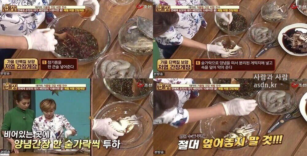 대가의 가을철 건강 비법 전수편으로 연예계 손맛의 대가인 배연정의 10분이면 끝나는 제철 저염식 간장게장 만들기입니다.