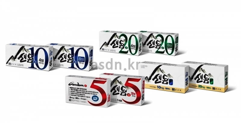 센돔은 알약 타입,필름타입 두가지 제형으로 되어져 있습니다.용량은 알약 타입은 5mg,10mg,20mg이 있으며 필름타입은 10mg,20mg 구공용해필름이 있습니다.
