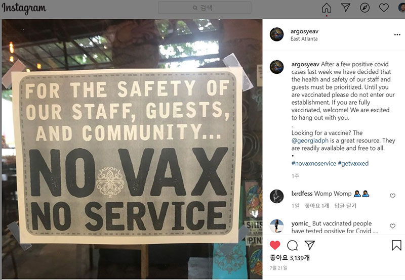 하지만 일부 식당 등에선 미접종자 손님은 아예 받지 않겠다고 선언한 것입니다.