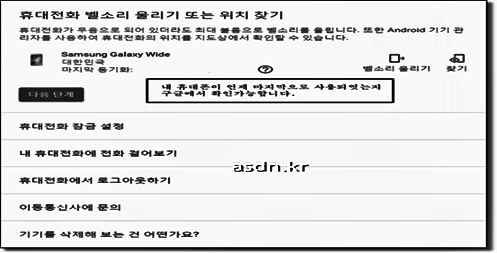 그러나 한 가지 아쉬운것은 폴더폰이거나, 애플폰에서는 내 휴대폰 기기 찾기 서비스가 제공이 되지 않는다는 것이 안타까울뿐입니다.