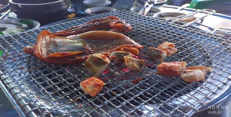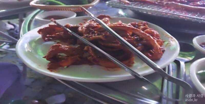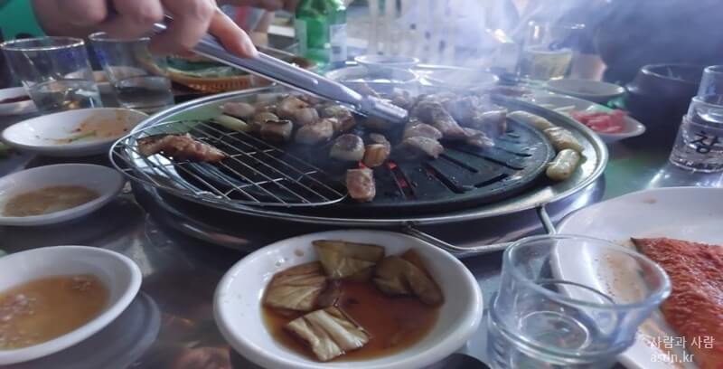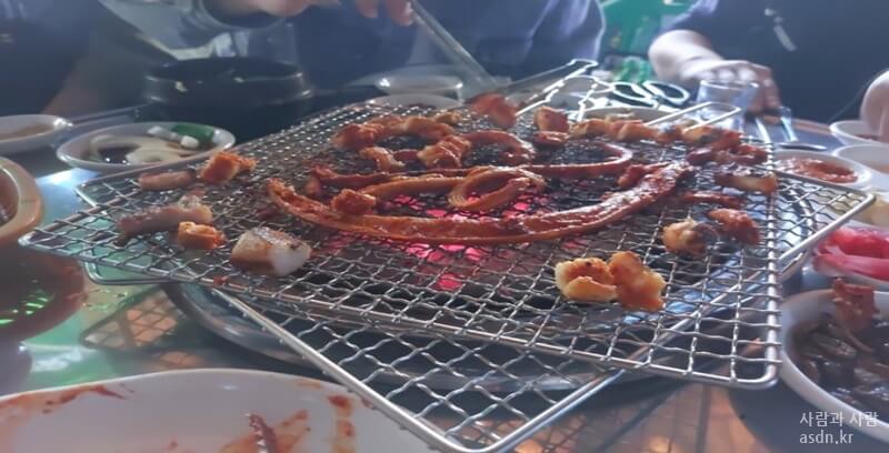 처음에 주문한 것은 아나고,곰장어,옆 테이블에는 삼겹살을 주문하고 고기를 굽기 시작합니다.