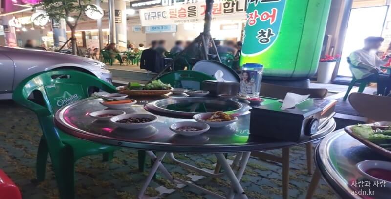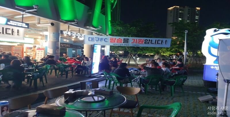 대구 fc 구장 밑에 잇는 식당으로 비가 오더라도 야외에서 먹을 수 있느 장접이 있습니다.