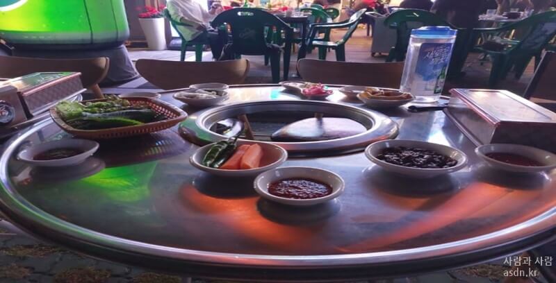 사장님이 테이블을 세팅해 주시고서는 술이랑 음료 이런거 물으시길래 사람들이 오면 시킨다고하고 기다립니다.