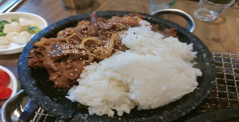 처음이라서 석쇠불고기인가 예상하면서 기다렸는데 사진 즉 썸네일을 보시면 아시겟지만 고기와 함께 밥이 나옵니다.