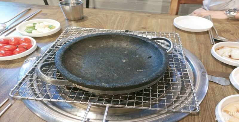 기본적으로 불판위에 석쇠가 세팅되어져 있고 이름없는전골을 주문하게되면 전골냄비에 바로 먹을 수 있게 이름없는전골을 부어주십니다.