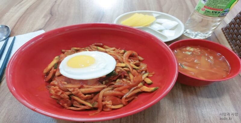 중화비빔밥이 나오기전에 먼저 짬뽕 국물이 먼저 나옵니다.안에 오징어도 좀 들어있고 밥과 함께 먹으면 진한 짬뽕 국물맛을 느낄 수가 있겠더라구요!