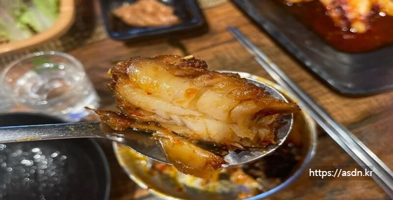 잘게 다진 청양초와 명태 육수를 넣어 만든 양념을 가득 부어 찐 코다리는 매콤하면서 쫄깃한 맛이 훌륭하져.