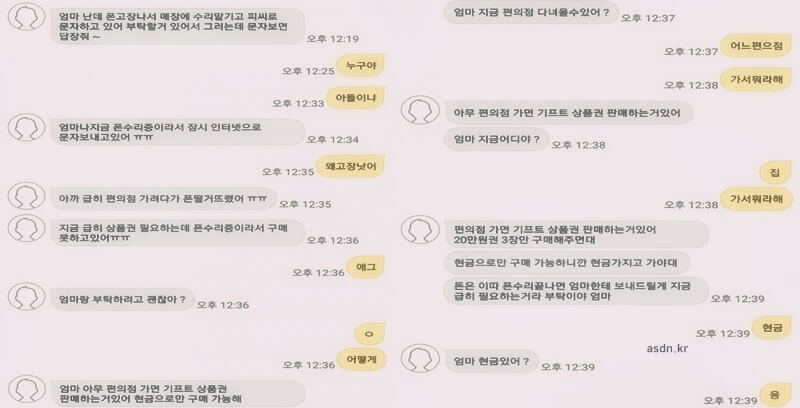 피싱범◆똘비 엄마 아무 편의점 가면 기프트 상품권 판매하는거 있어 현금으로만 구매 가능해
