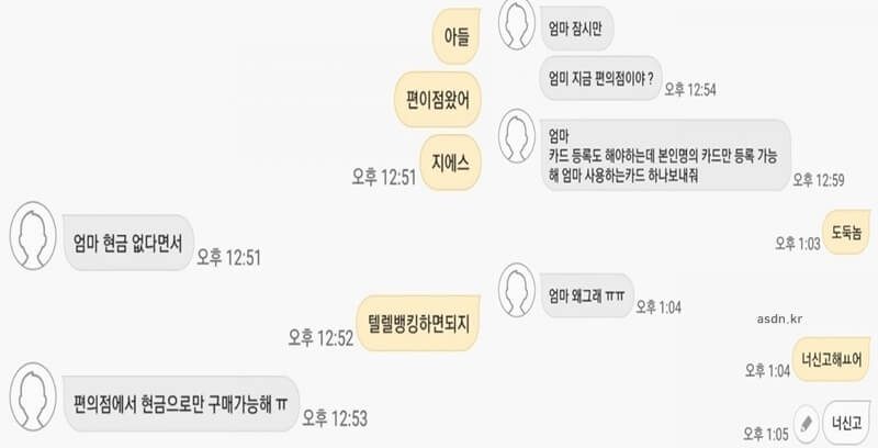 피싱범◆똘비 엄마 지금 편의점 다녀올수있어?
