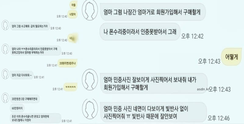 피싱범◆똘비 엄마 그럼 나잠간 엄마거로 회원가입해서 구매할게